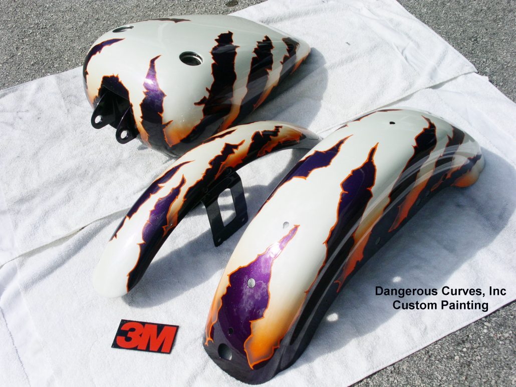 To say that Mark Smith has an eye for creative design is an understatement. He has been painting custom motorcycle designs for over two decades and his work has been featured many times. He takes your vision and brings it to life through your motorcycle. He also works with all insurance companies if your motorcycle gets damaged and needs paint repair. Their facility can service any factory or custom paint design. Mark takes pride in his work and wants to make sure your experience with Dangerous Curves is one to remember.
